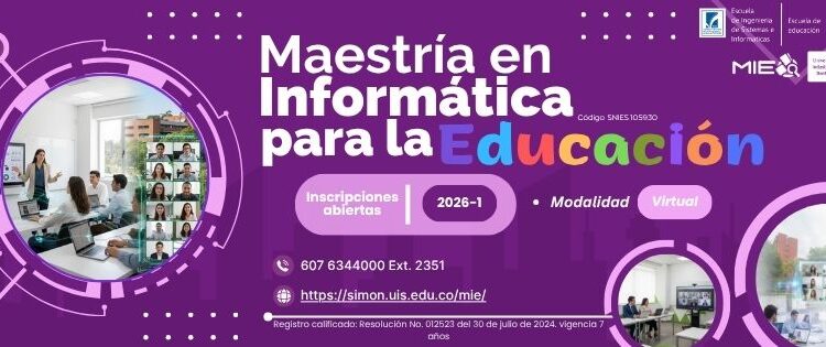 La Universidad Industrial de Santander se complace en informar que se encuentran abiertas las inscripciones para la séptima cohorte del programa de Maestría en Informática para la Educación en Bucaramanga. Dirigida a interesados en la formación a nivel de maestría como docentes investigadores en la educación pre-escolar, básica y media.